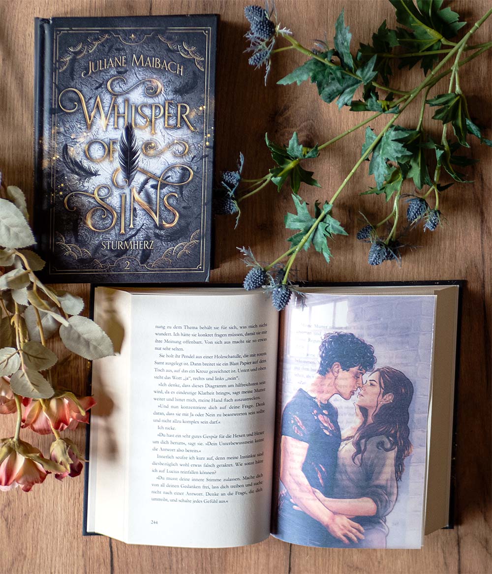 Du erhältst eine Hardcover Ausgabe "Whisper of Sins: Sturmherz" mit 3D UV-Lack und Soft-Touch Effekt!